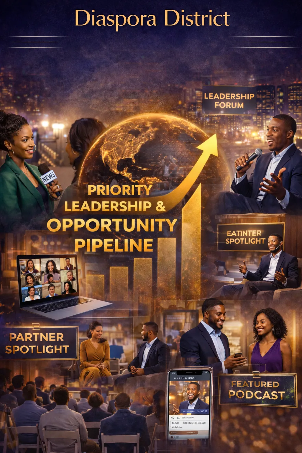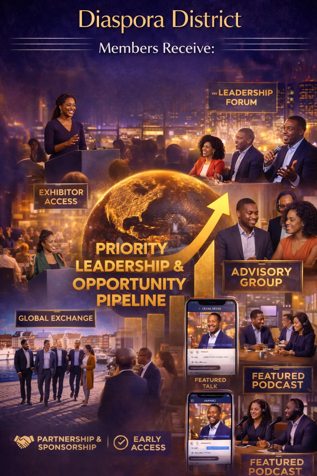 Paid members are placed inside Diaspora District’s Priority Leadership & Opportunity Pipeline—ensuring your work, voice, and brand are elevated first across our global ecosystem.